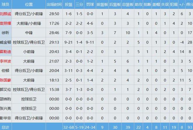 山东队数据如下: