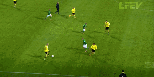 两人看似都是前腰,都活动在中锋的身侧,而且也都可以活动到边路,但罗伊斯的身体天赋明显好于布鲁诺,这不是在说罗伊斯的对抗多好,而是体现在他的带球速度明显更快,而且在高速向前的过程中,罗伊斯依然能够稳定处理球。